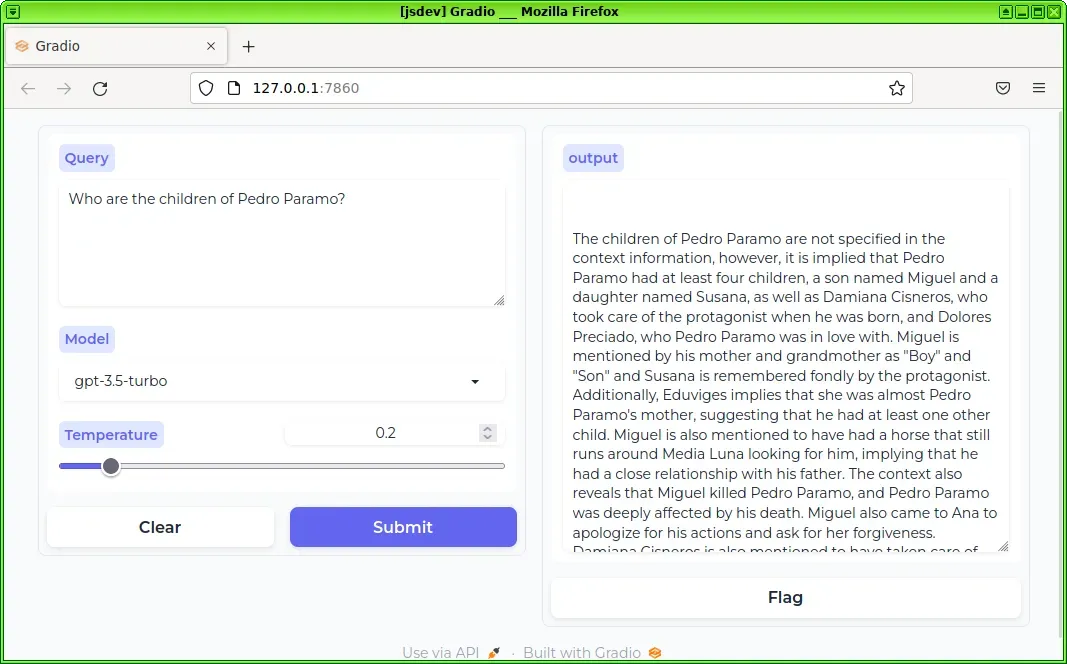 I made significant progress by quickly creating scripts to test my ideas. However, I began to wonder what it would take to develop an interactive tool where I could test and refine my prompts without dealing with UI libraries and components. That's when I discovered Gradio, a tool that allows you to create simple web applications for prototyping.
